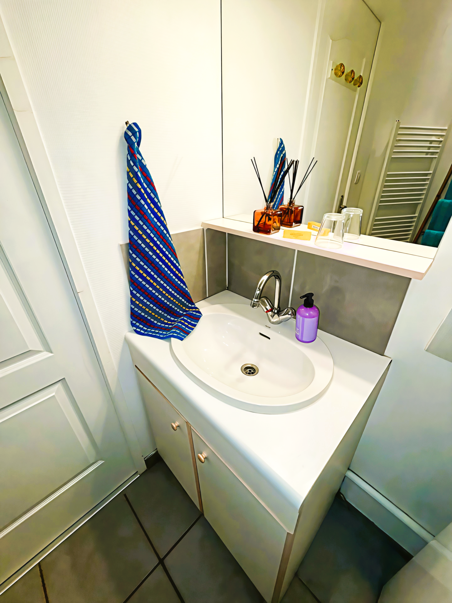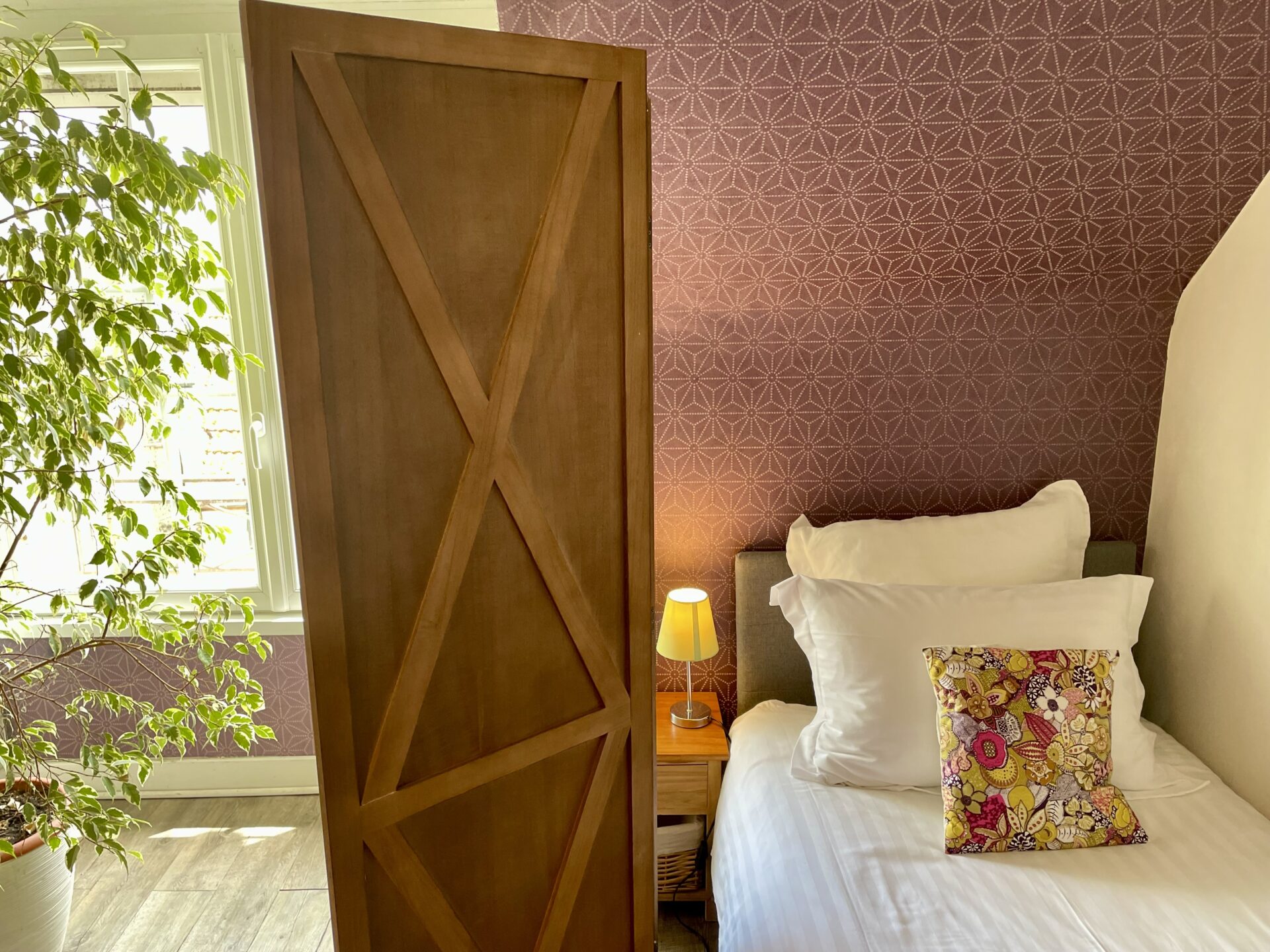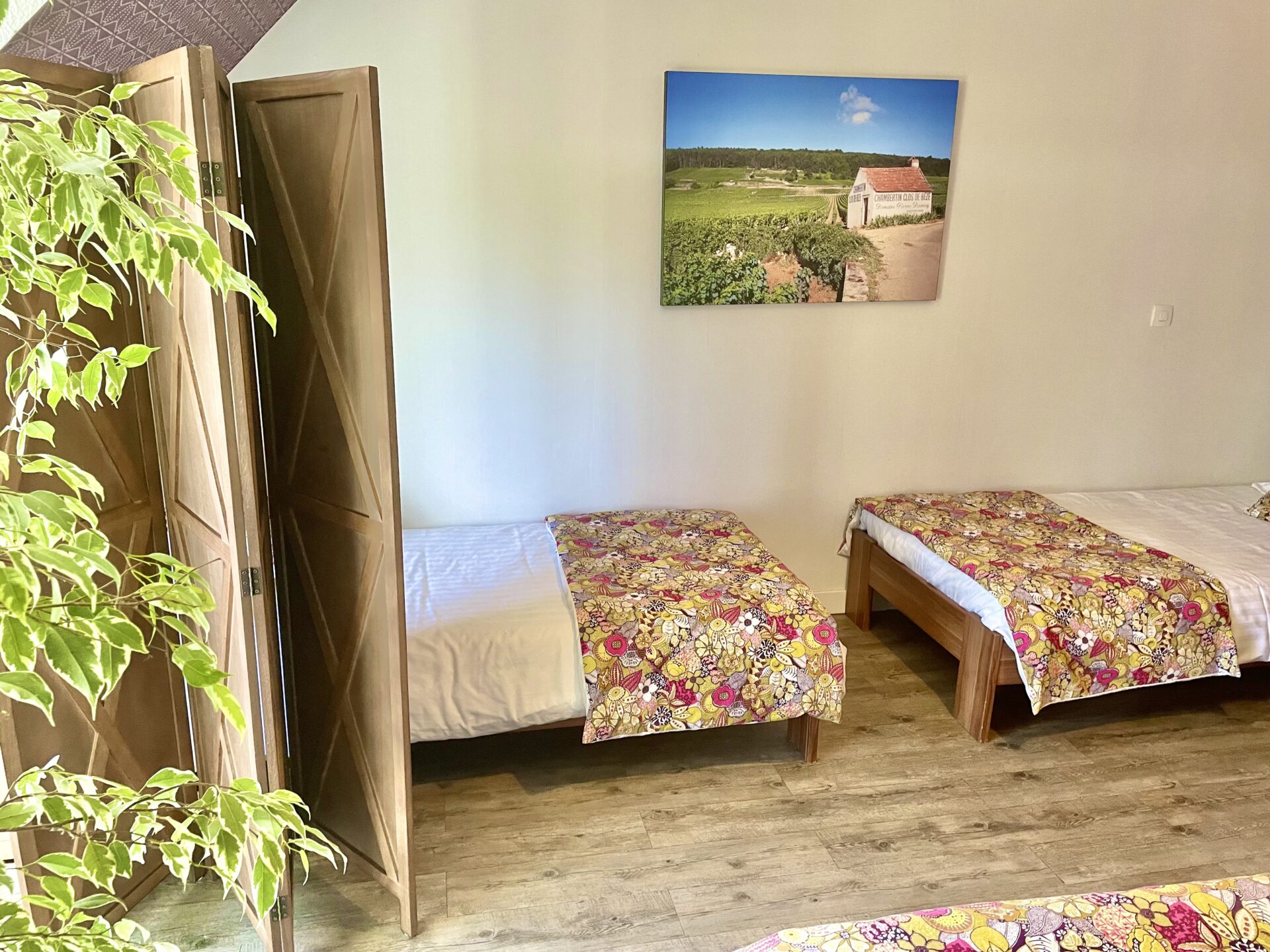 - À l’étage : une grande chambre climatisée avec un lit double 160×200 Tediber d’un confort exceptionnel, ainsi que deux lits simples 90×200 séparés par des paravents.
